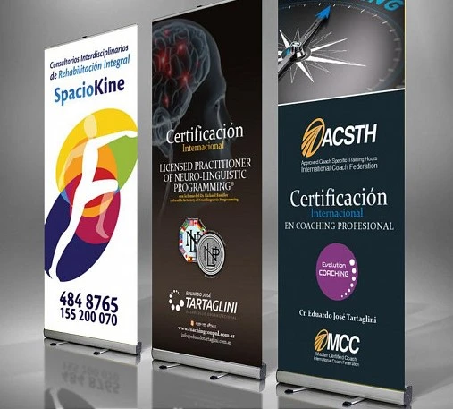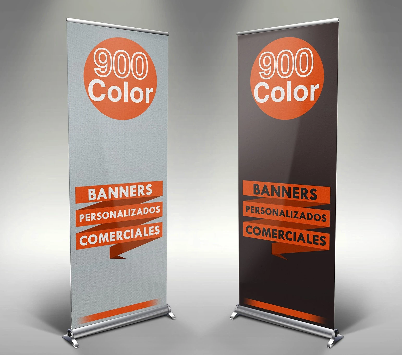 Portabanner Roll-Up Premium autoenrollable, totalmente de aluminio. Vista simple faz.