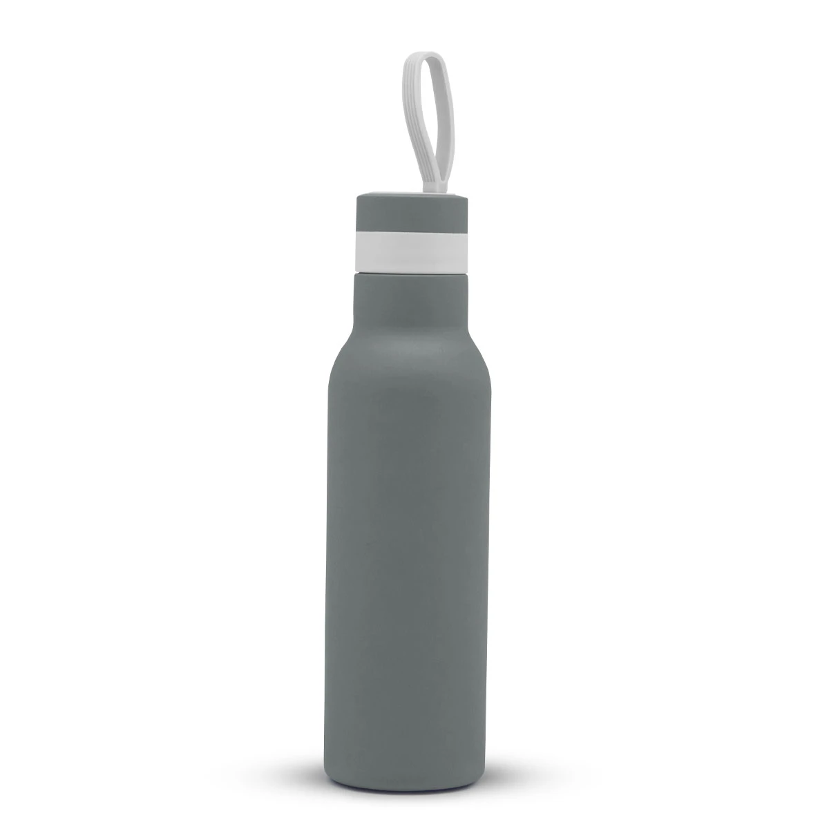 Ø 6,8 x 24,5 cm. Capacidad 500 ml. Acero inoxidable. Botella doble pared, sellada al vacío. Interior en acero 304 y exterior en acero 201 con terminaciones de silicona suave. Mantiene hasta 12 hs la temperatura de las bebidas calientes y 24 hs de las bebidas frías. Presentación en caja de regalo.