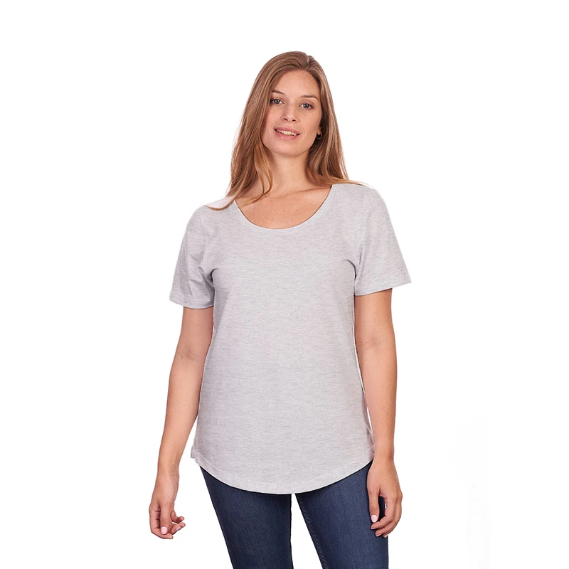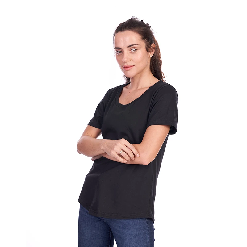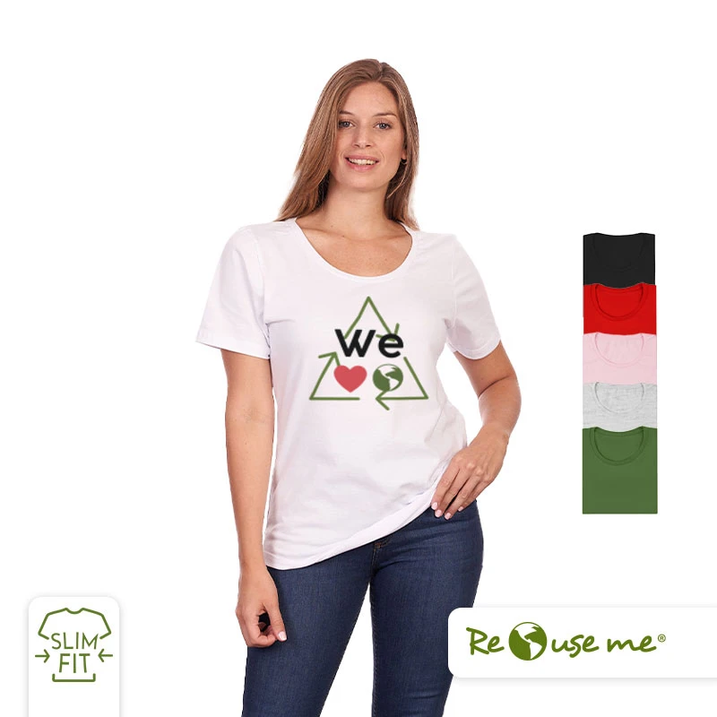 Remera de manga corta para mujer en corte slim fit, con cuello bote en ribb de algodón. Esta prenda está confeccionada 100% en algodón 24/1 peinado, un recurso ecológico renovable y sostenible. Ella mide 1.68m, pesa 60kilos y está usando talle M. Recomendaciones de uso para cuidar tu prenda: Lavar a máquina a 30°. No Blanquear. No secar en máquina. Planchar suavemente, evitando el área estampada. ReUseMe.